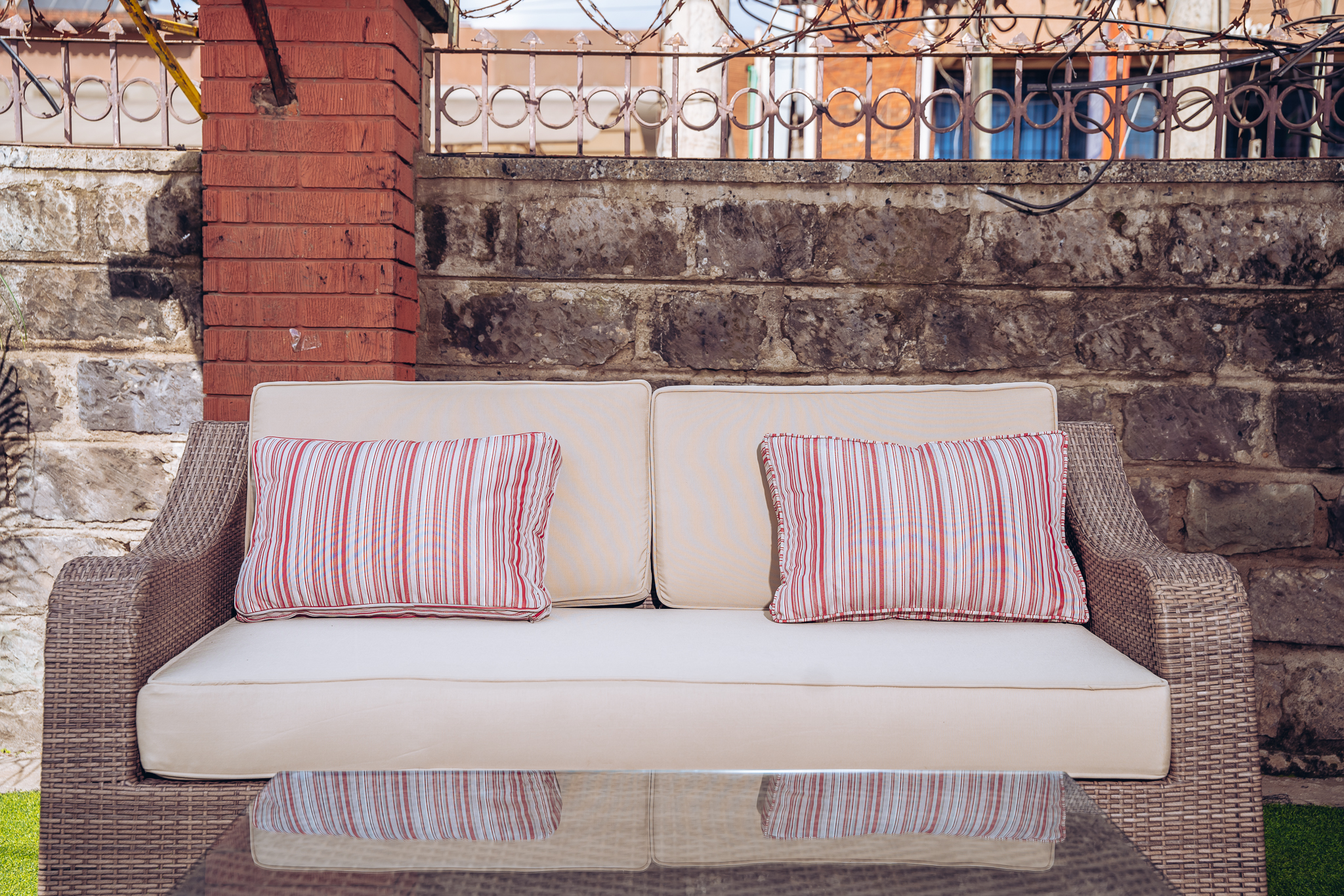 Each seat is fitted with soft, cream cushions and striped accent pillows in subtle red hues, delivering both comfort and classic charm. The low-profile table offers a convenient surface for drinks, décor, or reading, making this set perfect for entertaining or relaxing. Built from weather-resistant materials, Carnation balances long-term durability with elegant design—ideal for transforming your veranda, lawn, or terrace into a cozy retreat.