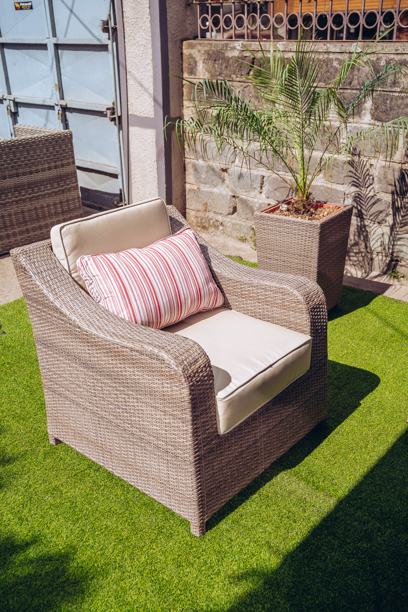 The Carnation seat set brings timeless sophistication to your outdoor living space. This beautifully coordinated 4-piece arrangement includes a plush 3-seater sofa, two deep armchairs, and a sleek glass-top coffee table—all featuring handwoven rattan frames in a natural tone that complements any patio or garden.