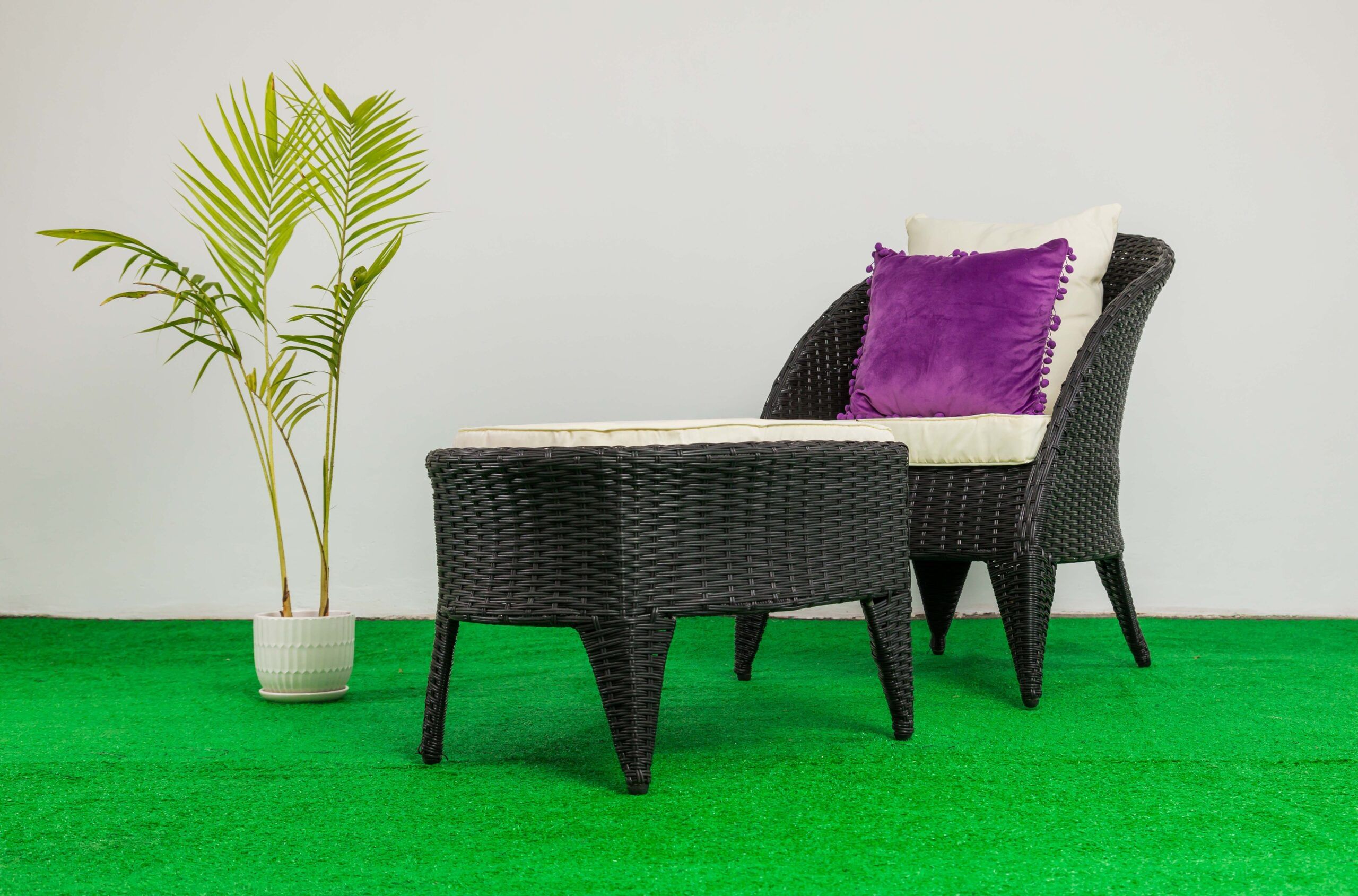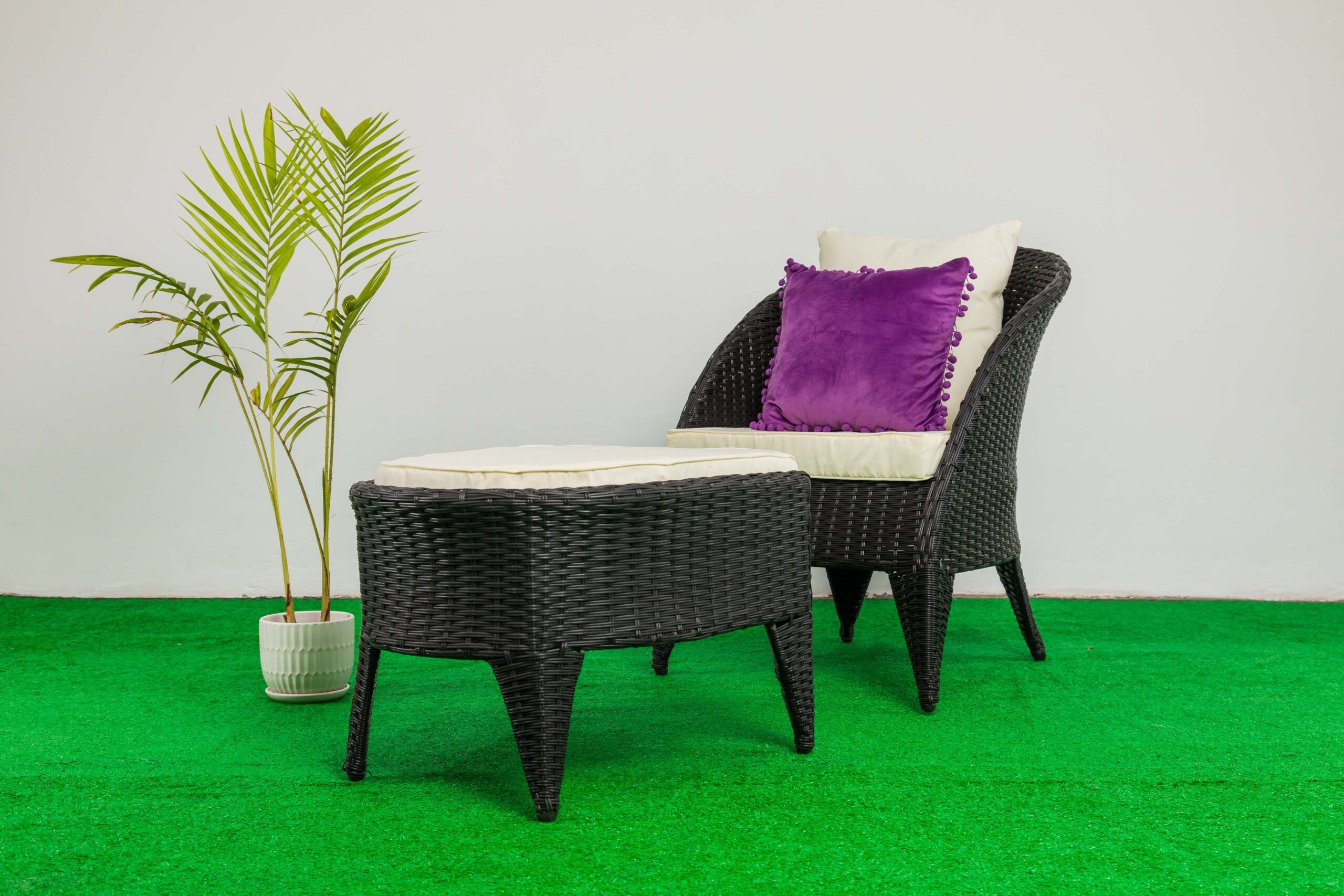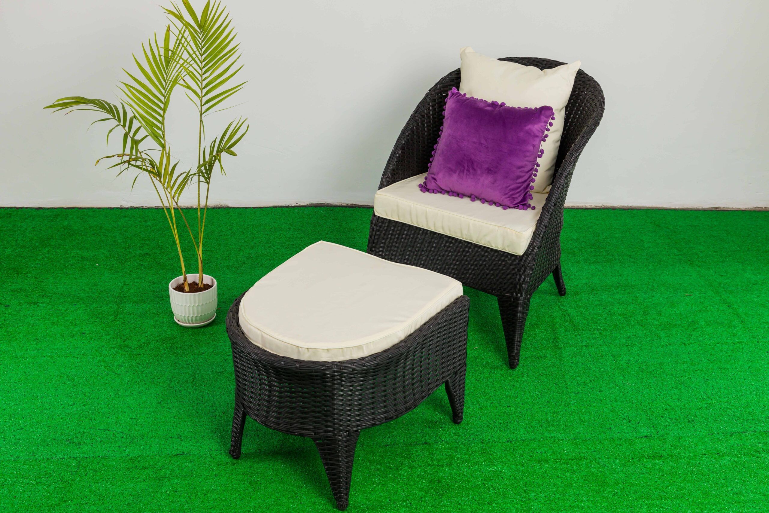 Unwind in comfort and style with this elegant Outdoor Chair and Footrest Set. Designed with a curved silhouette and cozy cushions, this set is perfect for relaxing on your balcony, patio, or garden. The matching footrest adds extra support for laid-back lounging, while the modern wicker design blends effortlessly with any outdoor décor.
