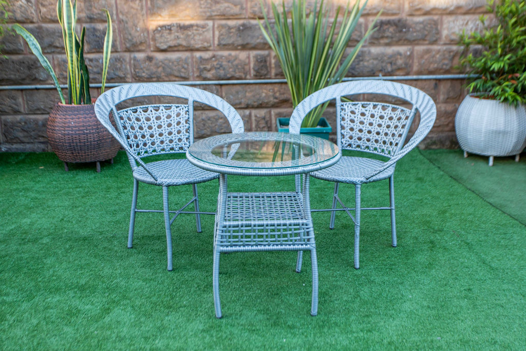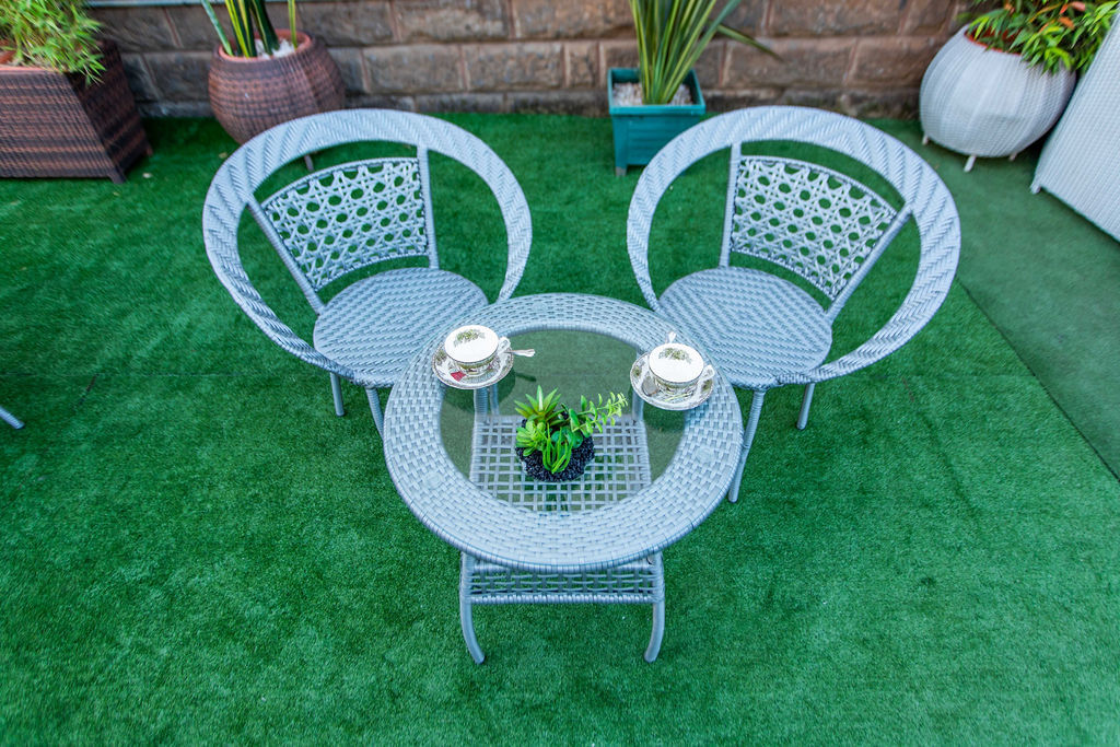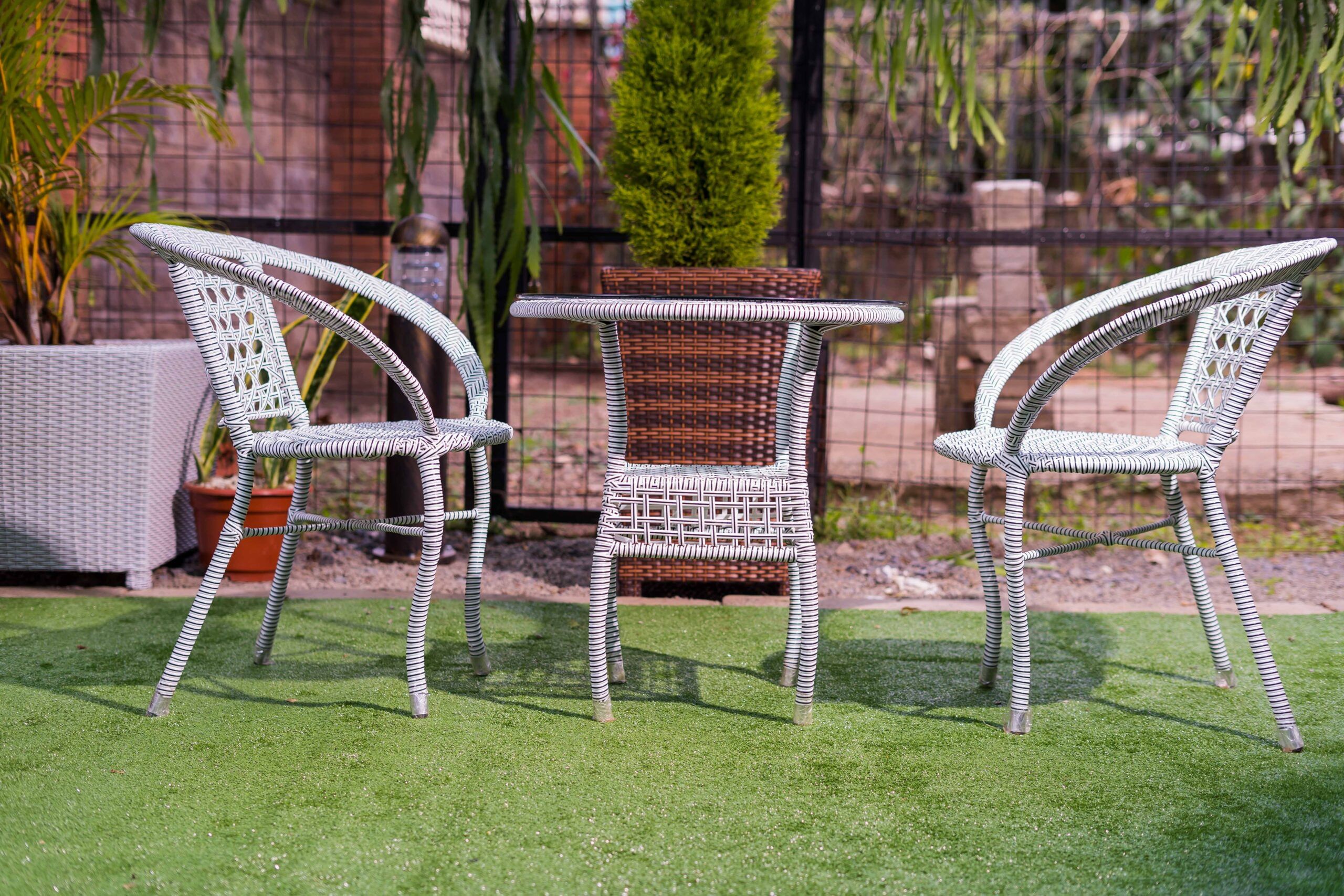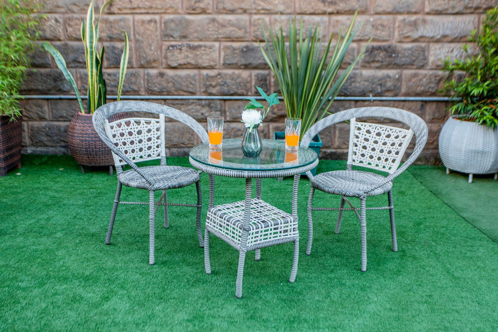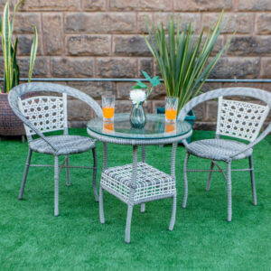 Add a touch of elegance to your balcony or patio with the Daisy Outdoor Set.Featuring two stylish armchairs and a compact glass-top table, this set is perfect for morning coffee, evening chats, or simply enjoying the outdoors. Its lightweight design and woven detailing offer both comfort and charm in a small space.