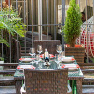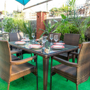 Crafted from premium, weather-resistant rattan and supported by a robust metal frame, the Hibiscus set is built to endure the outdoors while offering a modern, polished look. The chairs provide excellent comfort with armrests and ergonomic design, making every gathering a luxurious affair.