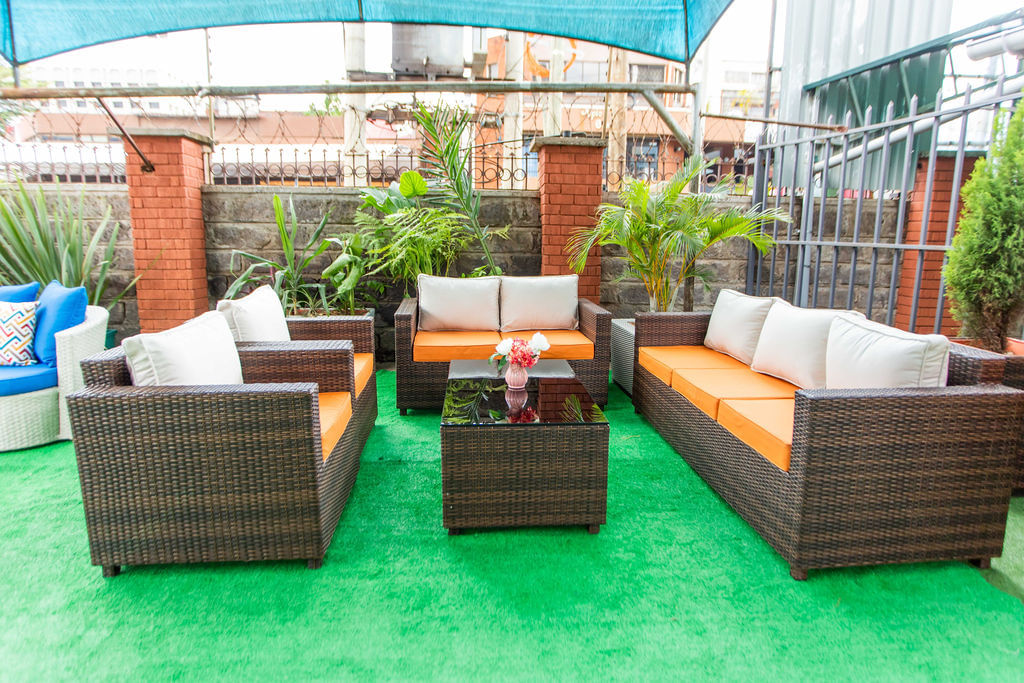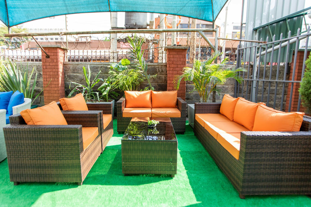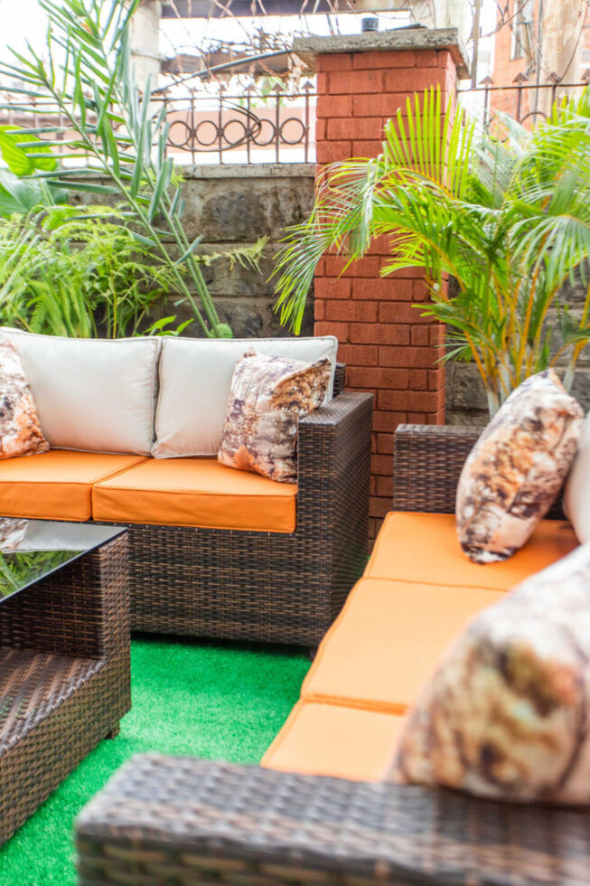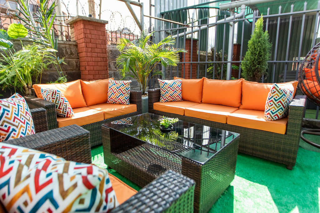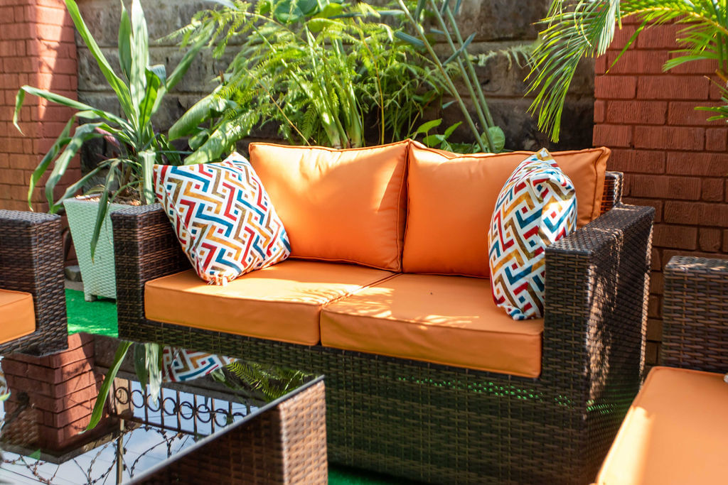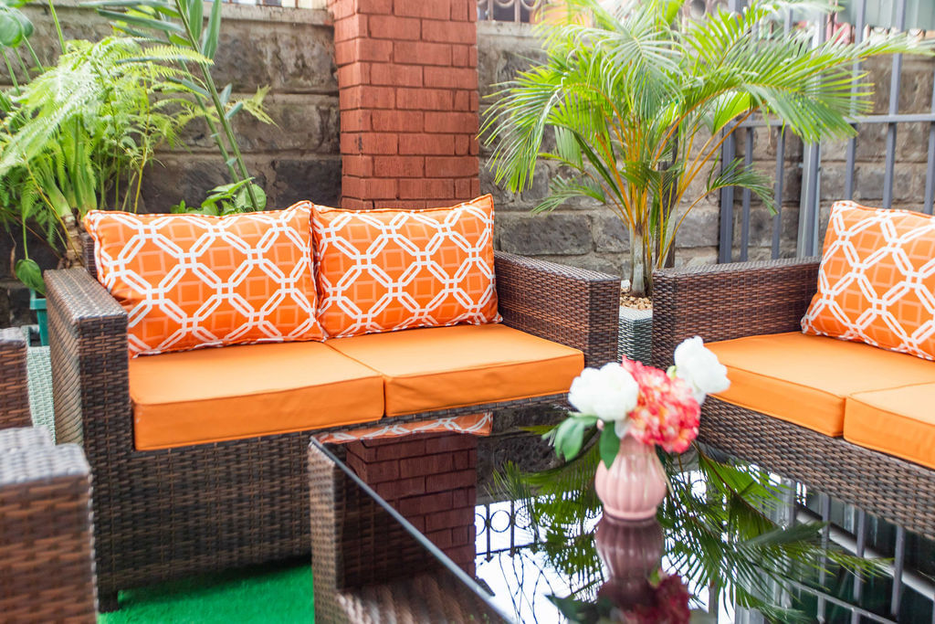 Crafted from durable, weather-resistant rattan with vibrant orange cushions, the Jasmine set offers a modern look with tropical warmth — ideal for patios, gardens, rooftops, or commercial lounges.