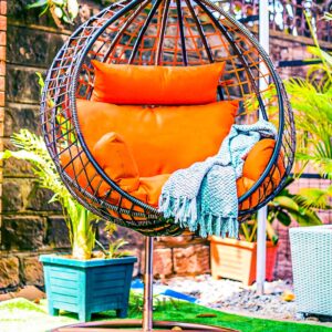 All-Weather Resilience: Hand-woven with premium, synthetic rattan that is UV-resistant and built to withstand the elements without losing its structural integrity.