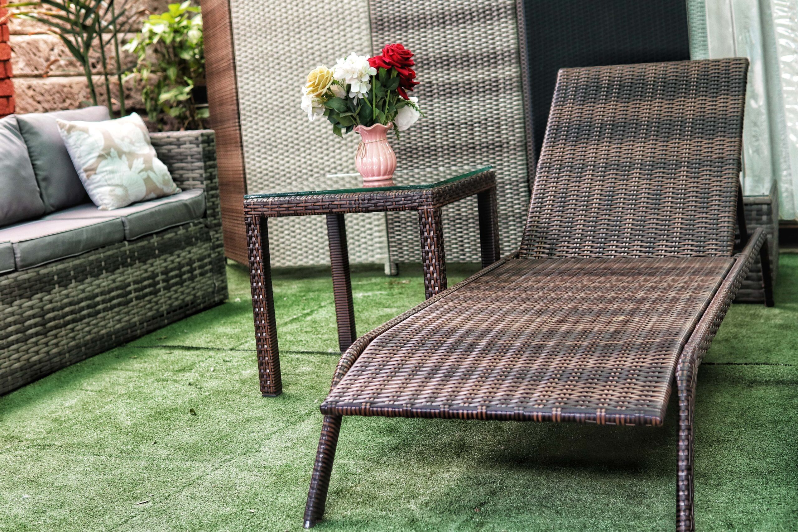 Includes 1 adjustable daybed, cushion, and a matching side table