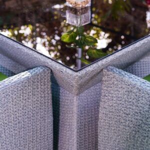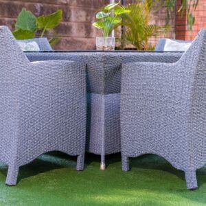 Turn your garden into a stylish dining retreat with the Tansy Outdoor Garden Set. This elegant set includes a square glass-top dining table and four comfortable woven chairs, making it perfect for alfresco meals, evening gatherings, or casual relaxation. Crafted for durability and comfort, it’s an ideal addition to any patio, backyard, or terrace.