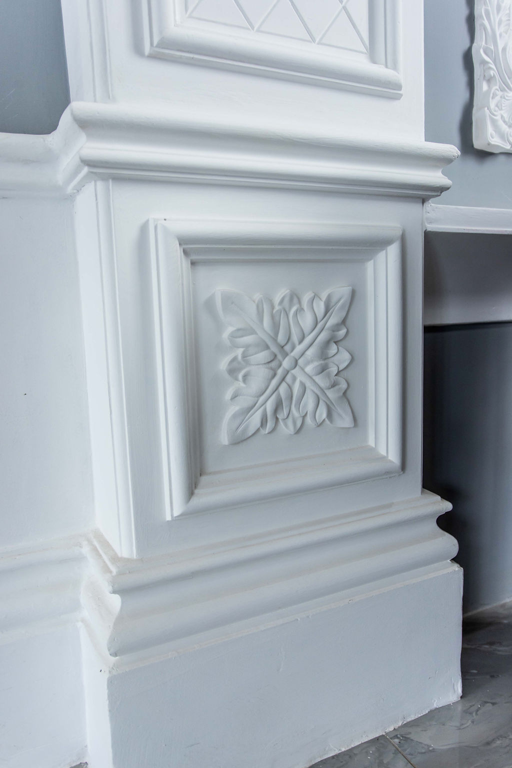 This TV Wall Unit is the perfect way to display your flat screen with enough storage space for all your entertainment needs. Made from high-quality gypsum, the mouldings are lightweight, easy to install, and paintable to match any color palette — bringing sophistication and structure to your living space.