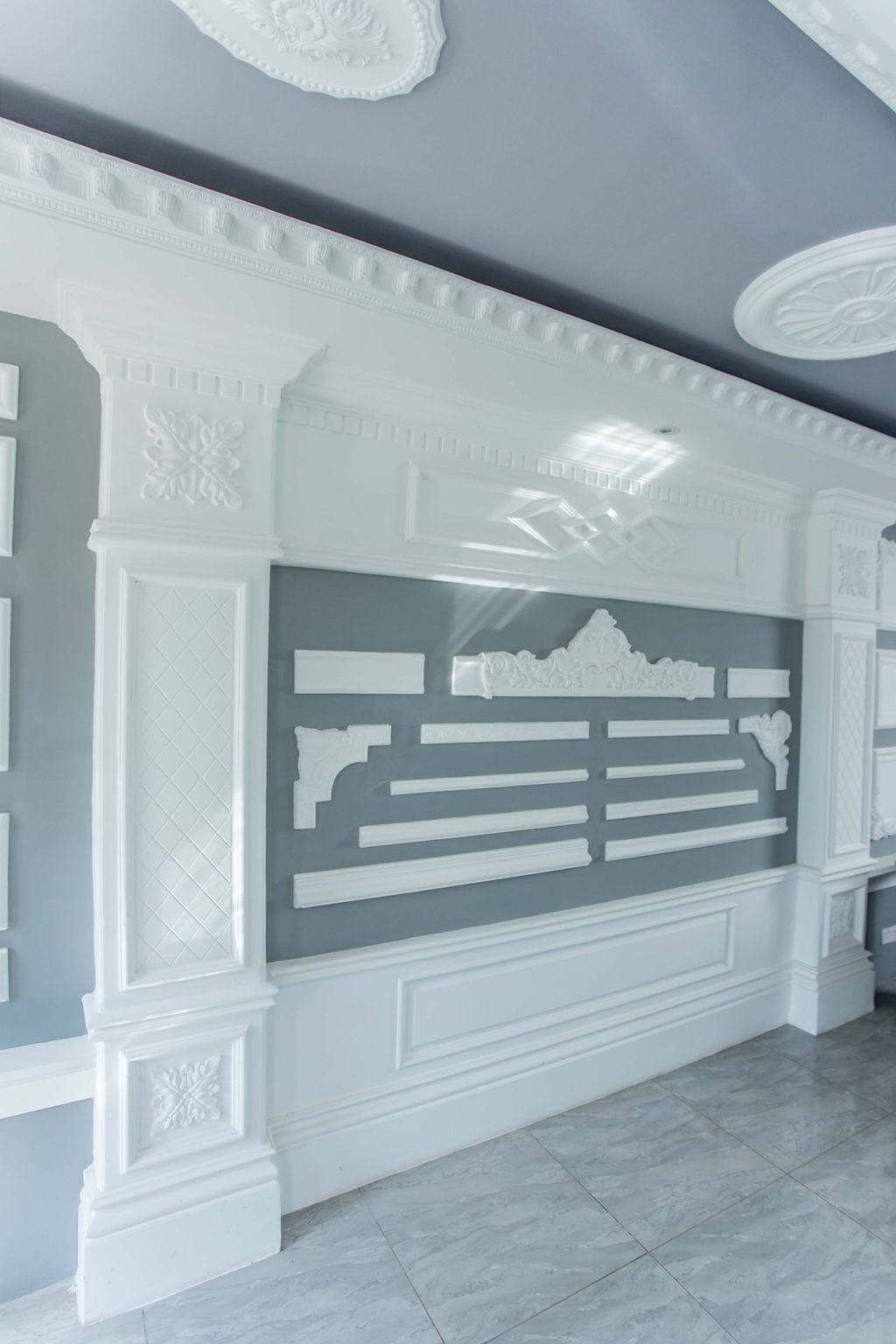 Made from high-quality gypsum, the mouldings are lightweight, easy to install, and paintable to match any color palette — bringing sophistication and structure to your living space.